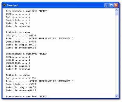 As estruturas são utilizadas para agrupar informações relacionadas de tipos de dados diferentes. Digamos que você precisa controlar os seguintes dados relacionados ao estoque de um pequeno estabelecimento comercial: