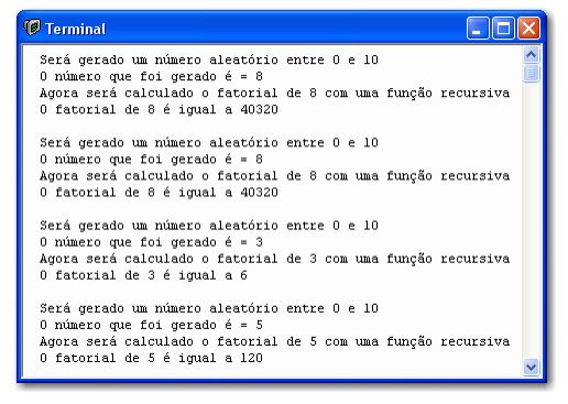 Note que para calcular a resposta, a função chama a si mesma! O programa completo pode ser visto na próxima página.