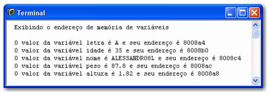 Ao executar o programa, o TERMINAL IO apresentará os seguintes resultados: