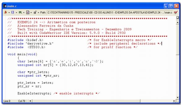 Uma maneira de manipular aritmeticamente os ponteiros é mostrada no EXEMPLO 24: