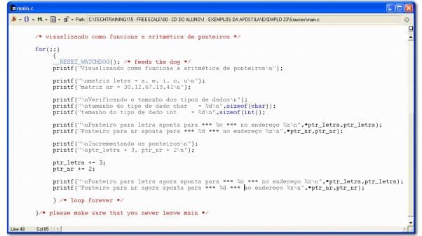 Outra aplicação muito útil é a aritmética com ponteiros. Com isto pode-se percorrer uma tabela de dados, incrementando ou decrementando os endereços da mesma, por exemplo.
