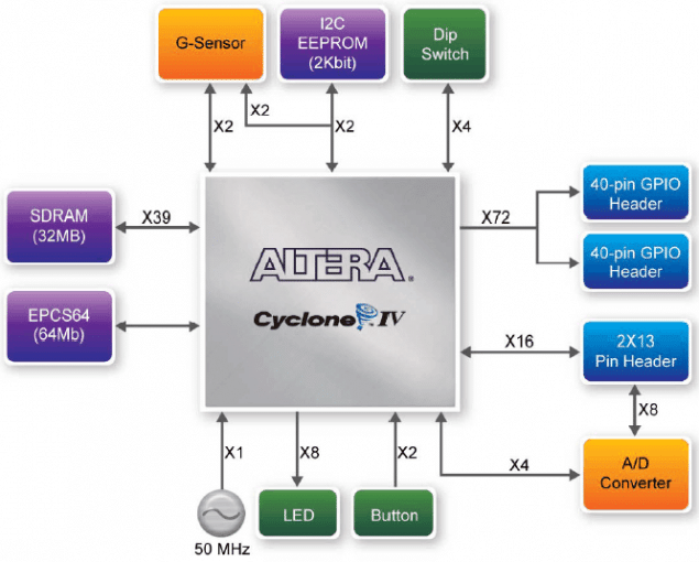 - Sistema de clock on-board com um oscilador dedicado de 50 MHz;