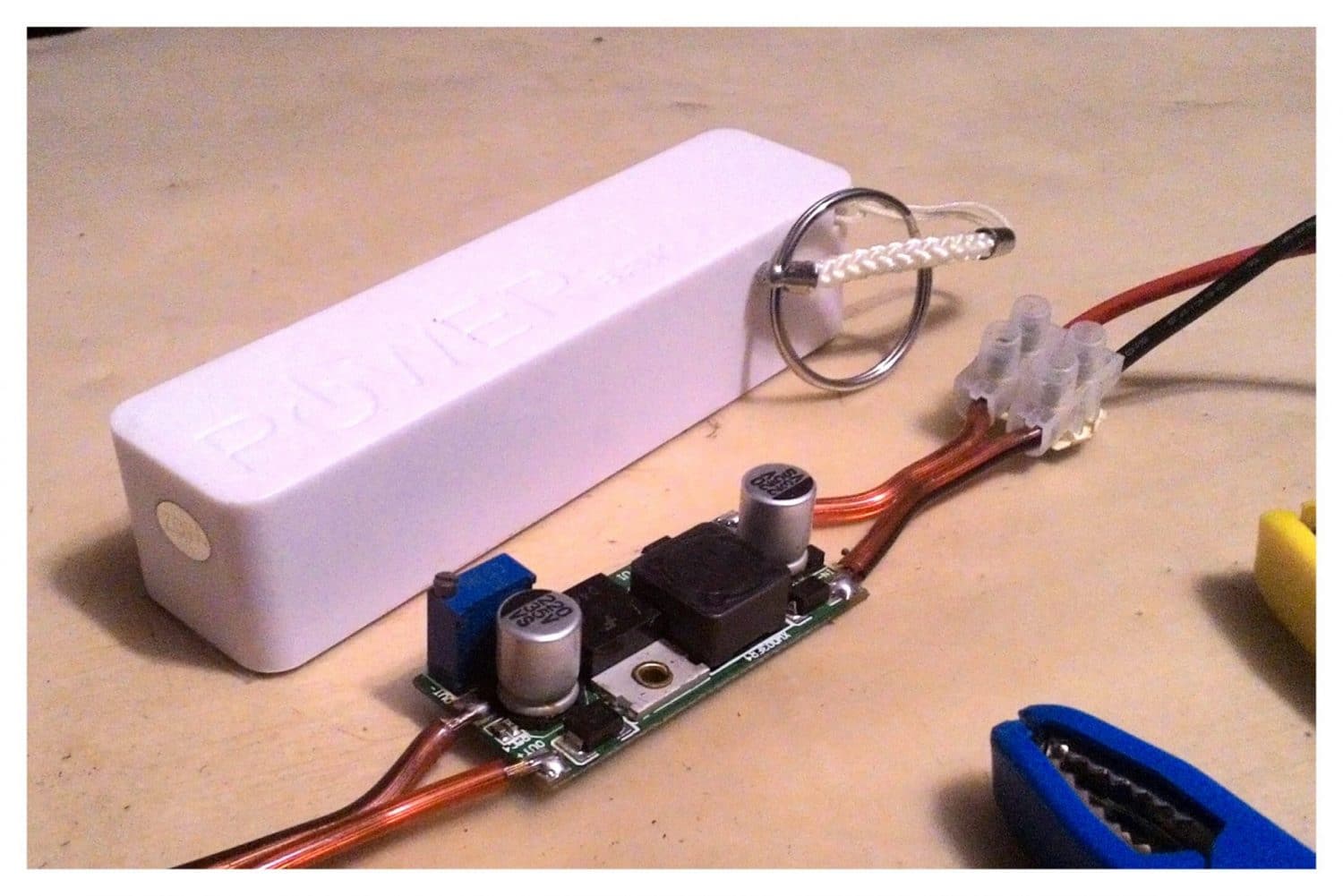 Neste ponto, por praticidade decidi utilizar um power bank como fonte de alimentação, desses bem simples para carregar o celular. Isso traria praticidade de trabalhar com uma fonte, apenas com o power bank e ainda não ter que gastar muito com baterias de 9 V. Como a saída do power bank é de aproximadamente 5 V utilizei um DC/DC bem simples elevando a tensão para 20 V. Na prática veremos que será possível trabalhar com uma tensão menor, desde que não utilizemos o circuito de calibração.