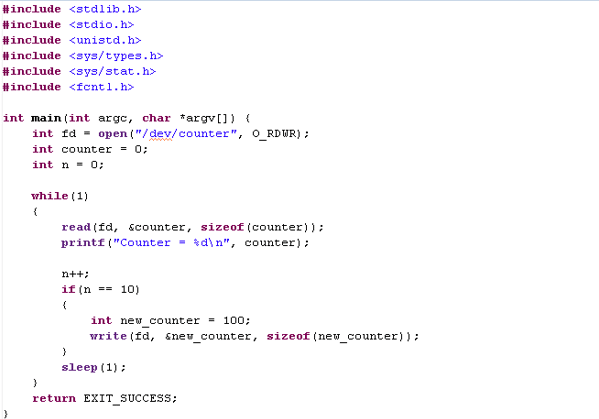 Para testar o funcionamento, criei um programe cliente bem simples. Ele fará leituras no nosso dispositivo a cada 1 segundo e vai exibir o valor atual do seu contador interno.