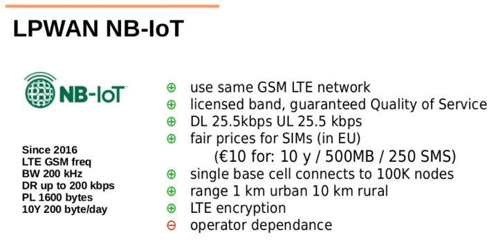 Recentemente a Olimex fez uma apresentação onde destacou o potencial do NB-IoT sobre LoRa e Sigfox: