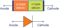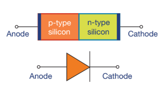 Os diodos de silício têm dois elementos adicionados a eles formando duas regiões, a região do tipo P, com portadores de carga positiva, e a região do tipo N, com portadores de carga negativa. Cada átomo do novo elemento substitui um átomo de silício na rede cristalina.
