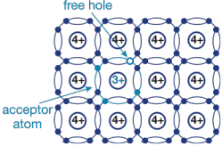 O elétron faltante cria buracos na estrutura cristalina. Invés de ter uma estrutura estável de 8 elétrons, agora há alguns átomos possuem apenas 7 elétrons em suas camadas externas.