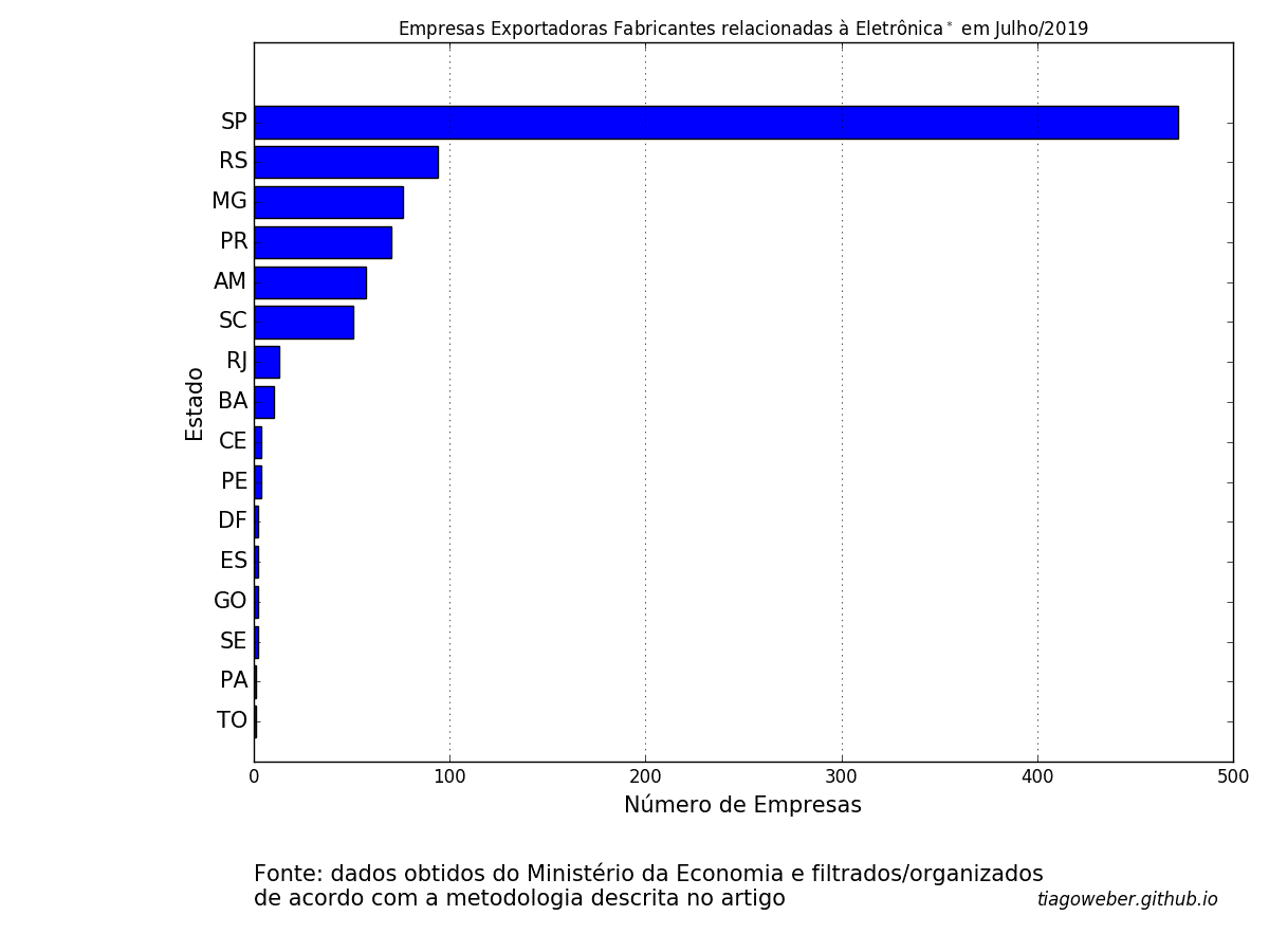 O site do Ministério da Economia contém planilhas com as empresas brasileiras exportadoras e importadoras, com dados históricos de cada ano e com dados acumulados até o mês anterior do ano vigente. A partir desta lista, é possível tentar extrair informações sobre as empresas relacionadas à eletrônica, mesmo que restrito àquelas exportadoras.