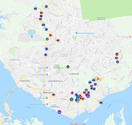 Além das concentrações na região Sudeste e Sul, é possível observar uma concentração relativa na cidade de Manaus, devido aos incentivos fiscais existentes na região, como pode ser visto na Figura 8.
