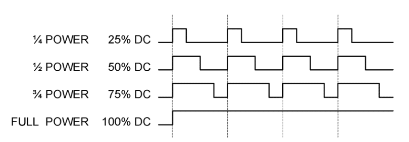 - Ciclo de Trabalho (Duty Cycle): É a porcentagem do tempo em que o sinal PWM permanece LIGADO durante um período completo. Por exemplo, um ciclo de trabalho de 50% significa que o sinal está ligado pela metade do tempo e desligado pela outra metade.