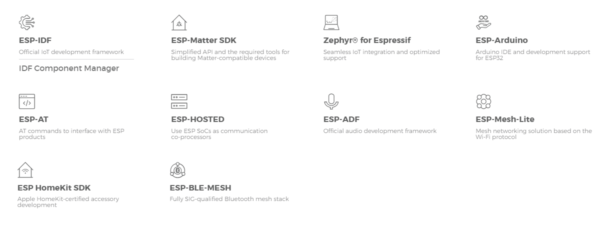 - ESP-ADF: Suporte abrangente para o desenvolvimento de aplicações de áudio.