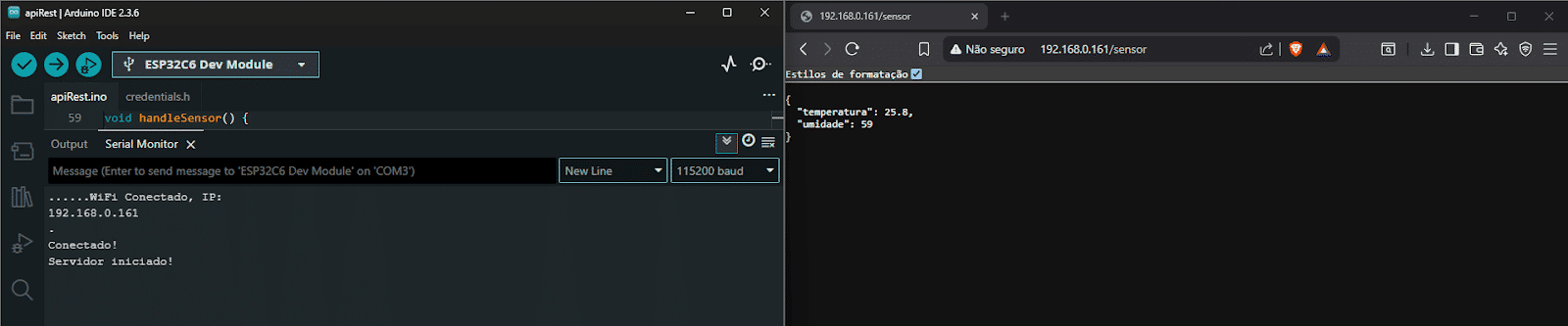 - GET /sensor: retorna os valores de temperatura e umidade em JSON