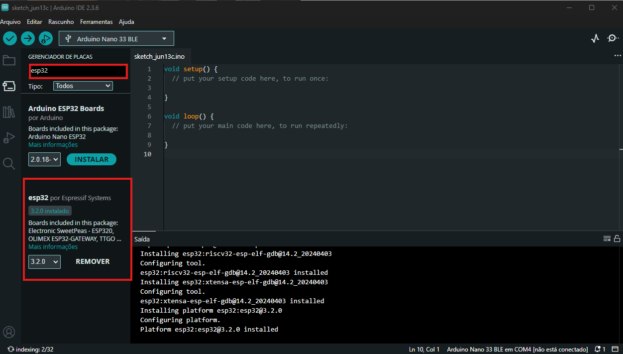 Instalação do pacote ESP32 para Arduino
