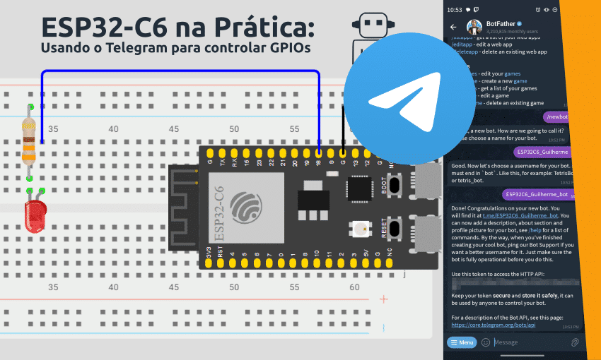 Neste artigo, mostraremos como controlar as GPIOs da placa de desenvolvimento ESP32-C6 DevKitC-1 utilizando o Telegram.