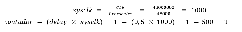 - Prescaler escolhido para o exemplo: 48000 – 1