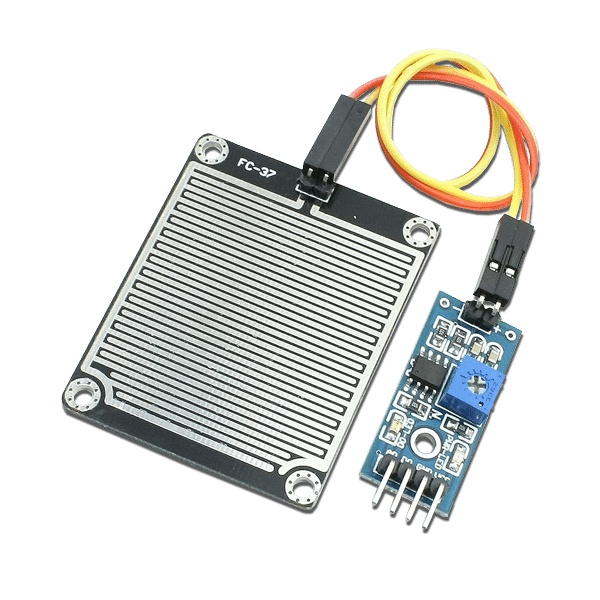 O sensor de chuva é um dispositivo eletrônico que possui a capacidade de detectar gotas de chuva que caem em sua superfície metalizada. Esse componente é composto por duas partes distintas: uma placa eletrônica (localizada à direita) e uma placa metálica coletora (localizada à esquerda).