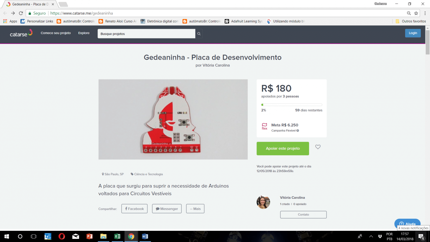 Para divulgação e arrecadação de fundos para a produção da Gedeaninha, criamos uma campanha no Catarse chamada Gedeaninha – Placa de Desenvolvimento.