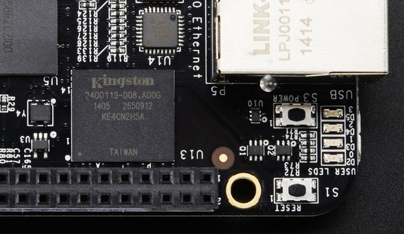 Essa tensão também alimenta o U15 (SN74LVC2G241), que faz o trabalho de buffer de sinal para a serial presente em J1. Essa é a porta serial de debug do sistema, que não está presente nos conectores P8 e P9. O buffer faz o casamento dos níveis de sinais para garantir o TTL-3V3, além de servir como proteção para o núcleo.