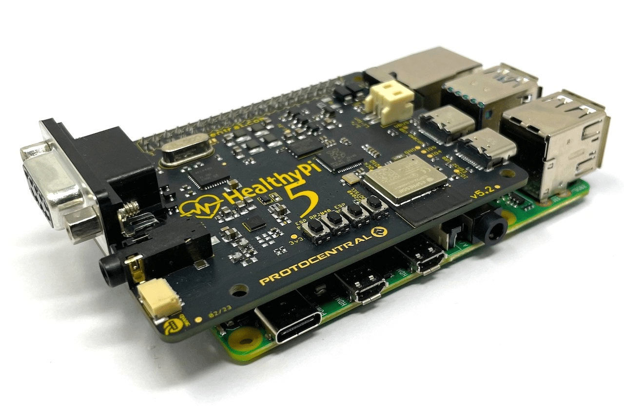 O HealthyPi 5 é compatível com as especificações do Raspberry Pi HAT, permitindo a transmissão em tempo real dos sinais de ECG, respiração, PPG e temperatura para um aplicativo na placa. Com isso, é possível utilizar um Raspberry Pi 3 (ou superior) para processar os dados.