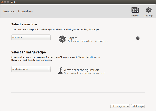 Neste tutorial não cobrimos todas as funcionalidades da ferramenta, mas é possível adicionar novas machines e camadas (clicando em “Layers“), bem como configurações avançadas (clicando em “Advanced configuration“) para a escolha de qual distro utilizar, quais formatos de imagem de sistema de arquivos, qual formato dos pacotes gerados (deb, ipk ou rpm), tamanho extra na imagem exclusão de pacotes que possuam licença GPLv3 e geração de SDK com toolchain e bibliotecas para desenvolvimento de aplicações.