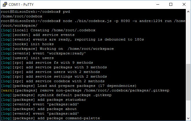 # node ./bin/codebox.js -p 8090 -u andre:1234 run /home/root/workspace