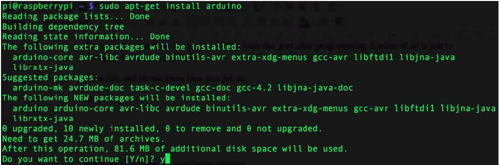 01) Instale a IDE do Arduino no seu Raspberry Pi (caso você não tenha). Para esta etapa vá no terminal do Raspbian e digite:
