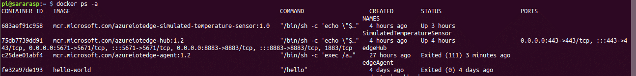 $ sudo iotedge list