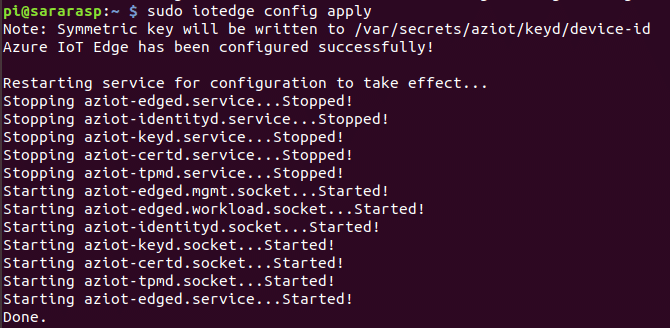 $ sudo iotedge config apply