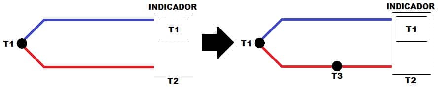 Considere a seguinte situação: A temperatura T1 está sendo medida em um determinado processo através de um termopar, ou seja, sua junta quente está situada em um ponto conveniente enquanto a junta de referência exposta a uma temperatura T2 (para simplificar, estamos supondo que esta junta já possui o elemento responsável por medir a tensão gerada bem como converter este valor para o relativo em temperatura e apresentá-lo por meio de um indicador). Desta maneira é possível determinar a temperatura T1. De acordo com a lei do circuito homogêneo, mesmo se houver algum ponto em um dos condutores sujeito a uma terceira temperatura T3, a tensão gerada indicada será a mesma do caso anterior. Ou seja, caso os condutores permaneçam com suas estruturas homogêneas, o que importa é a diferença de temperatura entre as juntas.