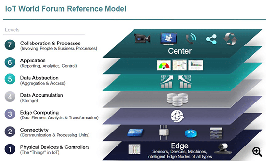A Figura 1 mostra as diversas camadas de um sistema completo de Internet das Coisas, segundo o modelo proposto pelo IoT World Forum. Cada nível implica uma escolha e pela pluralidade de ofertas isto não é trivial. Dada a complexidade do tema o artigo focará na conectividade e em um pequeno subsistema de amplo espectro de aplicação: as tecnologias de radiofrequência de longo alcance LoRa®, Sigfox e NB-IoT.