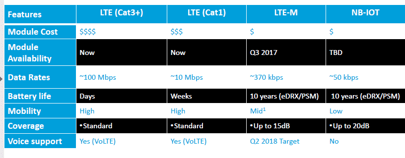 O organismo de normas internacionais 3GPP concluiu a normatização do NB-IoT (Narrow Band IoT) em meados de 2016. Este padrão usará frequências licenciadas, as mesmas usadas por algumas frequências do 4G, permitindo que algumas estações sejam atualizadas e compartilhem sua infraestrutura. A taxa de dados é relativamente alta, aproximadamente 50 kbps.