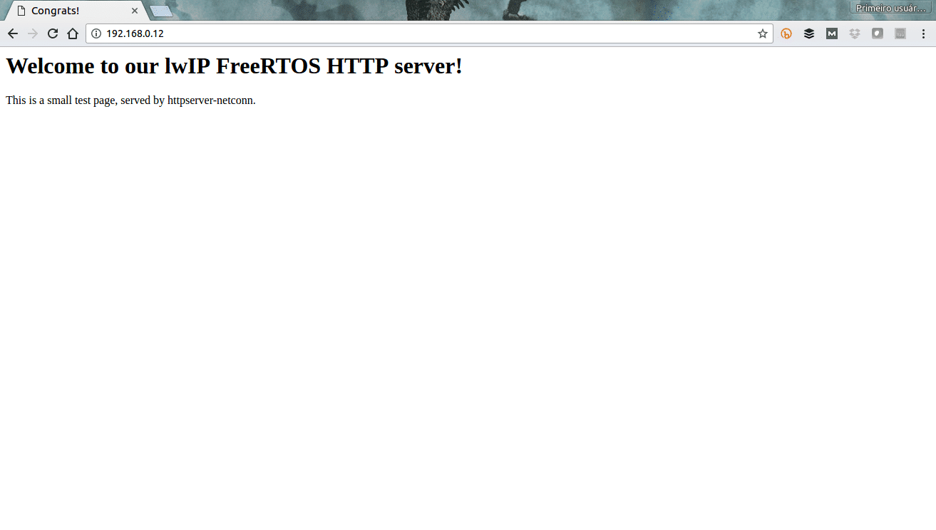 Waiting for TCPIP thread to initialize... Starting LWIP HTTP server... IP_ADDR : 192.168.0.12 NET_MASK : 255.255.255.0 GATEWAY_IP : 192.168.0.1