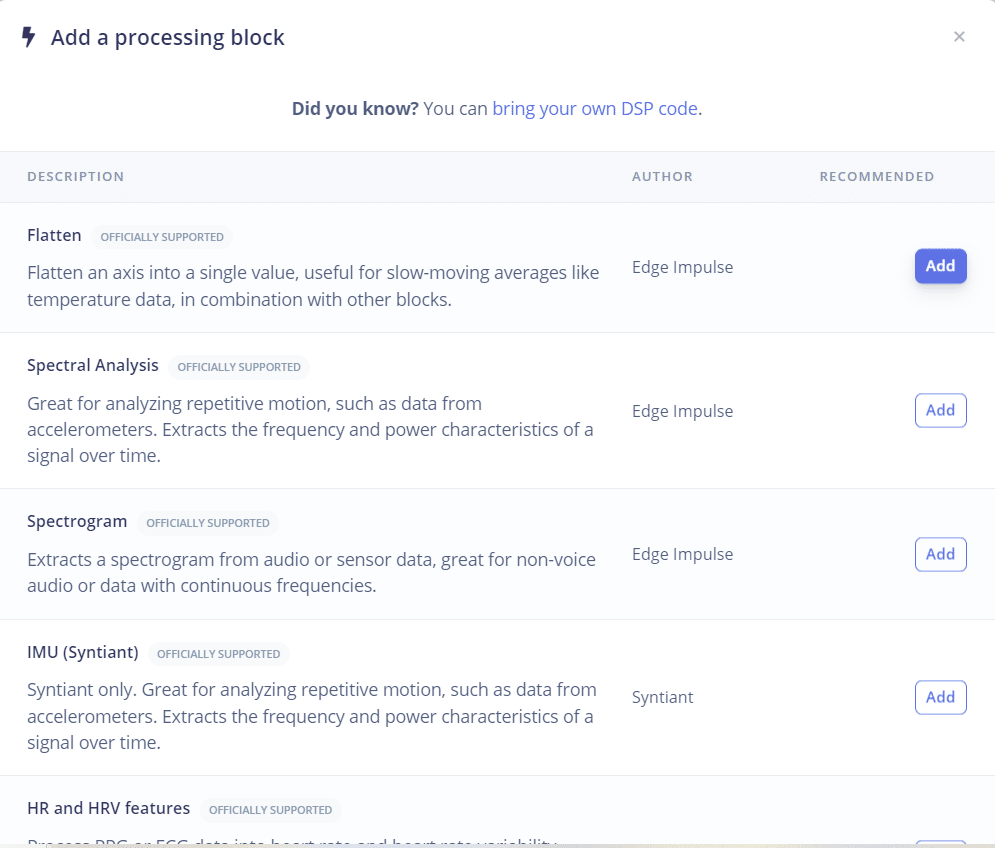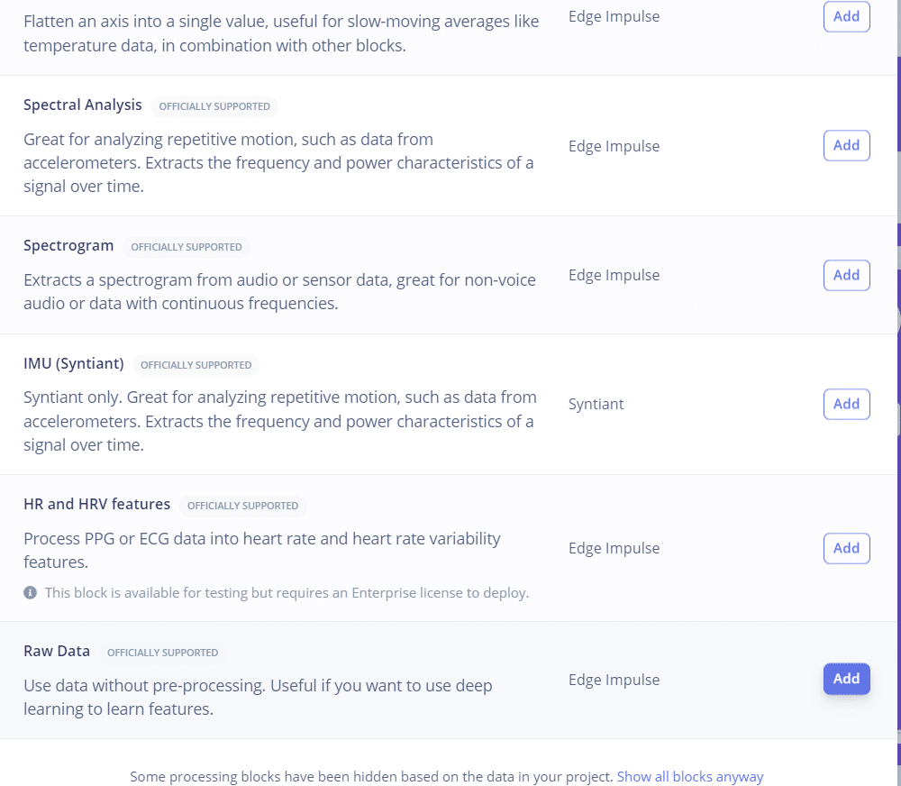 - Volte para o Create Impulse. Exclua o Processing e Learning block. Tentaremos utilizar o seguinte: