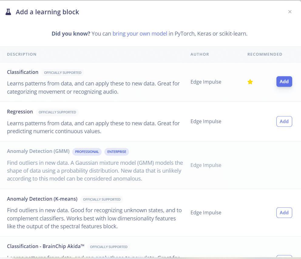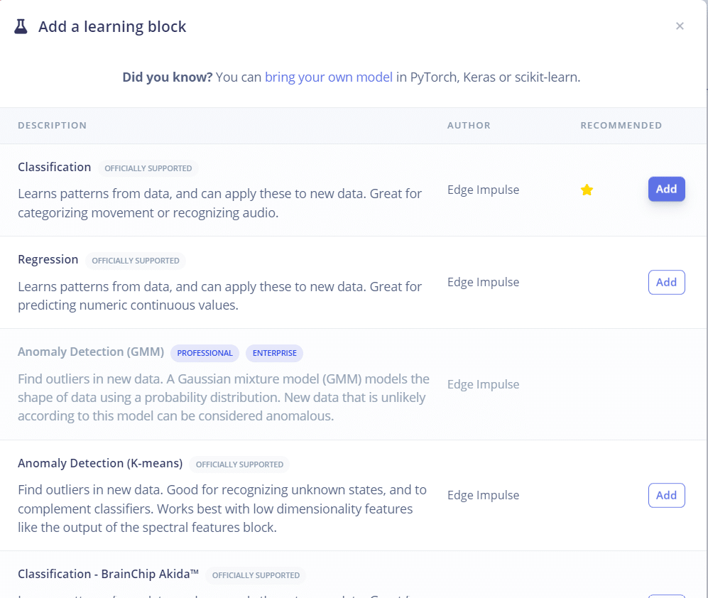 - No Learning Block, selecione Classification