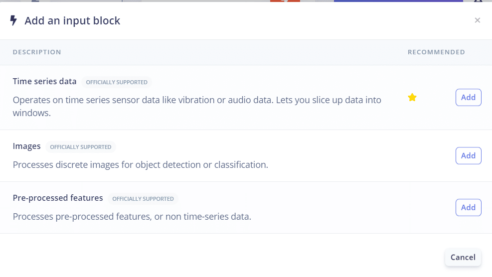 - No Input Block, selecione Time Series Data
