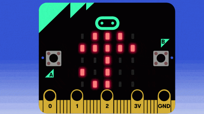 Os desenvolvedores da micro:bit tiveram uma sacada muito bacana ao acrescentar uma matriz de LEDs à placa. Usando LEDs SMD, é montada uma matriz de 5 x 5, que permite exibir textos e imagens: