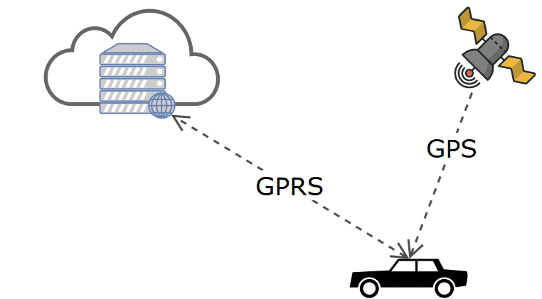 O padrão Device-to-Cloud (Dispositivo para Nuvem) é utilizado quando o dispositivo se comunica diretamente com a Internet, sem um equipamento intermediário entre esta comunicação. Como na Figura 4, um carro possui uma placa de telemetria que possui módulo GPS e um rádio GPRS embutido. Suas informações de posicionamento são transmitidas pela rede de dados de telefonia móvel diretamente para um serviço na nuvem, sem depender de nenhuma infraestrutura própria de rede ethernet ou WiFi, por exemplo.