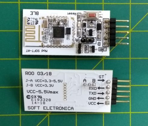 Para os entusiastas mais “makers” de plantão, há também a opção da BLE1010 em uma placa de 5 pinos, onde o módulo é basicamente usado na forma de ponte Bluetooth-Serial.
