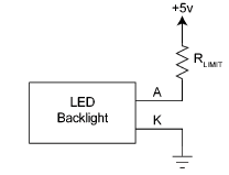 A Figura 7 ilustra um circuito típico para ativar o backlight. Utilizando os dados da Figura 6, podemos calcular o resistor de limitação de corrente.