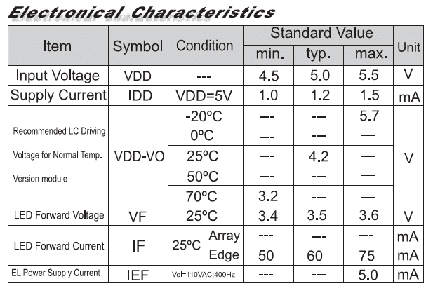 Quando se consulta o manual de um módulo de display LCD, em geral se obtém apenas uma página contendo as dimensões e especificações elétricas. Isso pode parecer pouco mas é mais do que o suficiente. Observe na Figura 3 as especificações do módulo retratado na Figura 1.