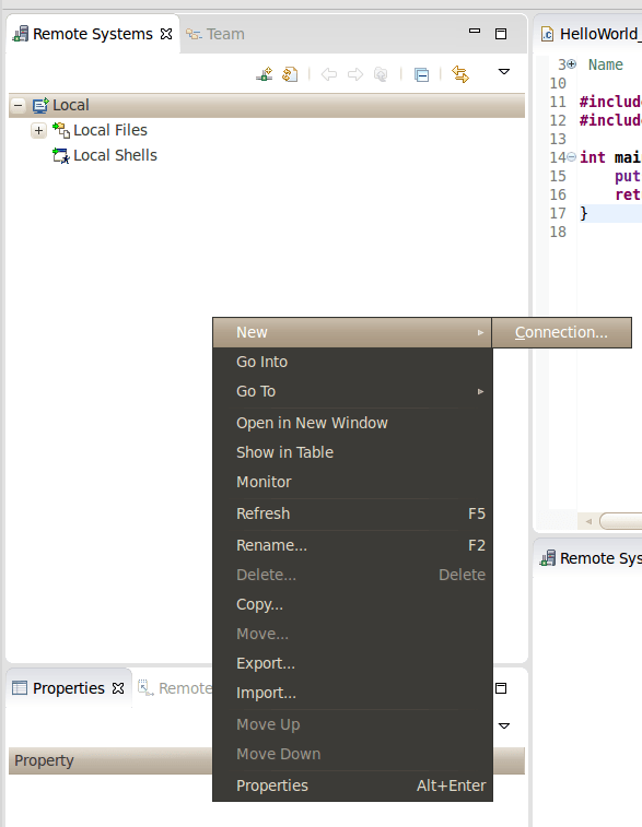 Em seguida na aba “Remote System”, aperte o botão direito e crie uma nova conexão:
