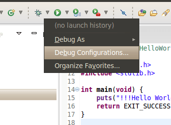 Para configurar o Debug do projeto, acesse o menu no Eclipse: