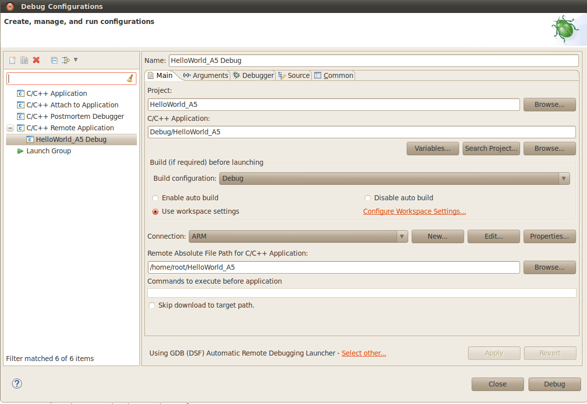 Para finalizar, altere o campo “GDB command file” para: