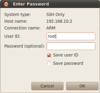 Ao finalizar, uma janela solicitando usuário e senha aparecerá. No caso da Toradex, complete com: