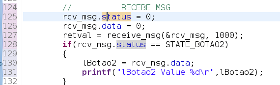 Sendo assim, ao pressionar o botão2 a mensagem será enviada pelo M4 e o A5 receberá nessa linha.