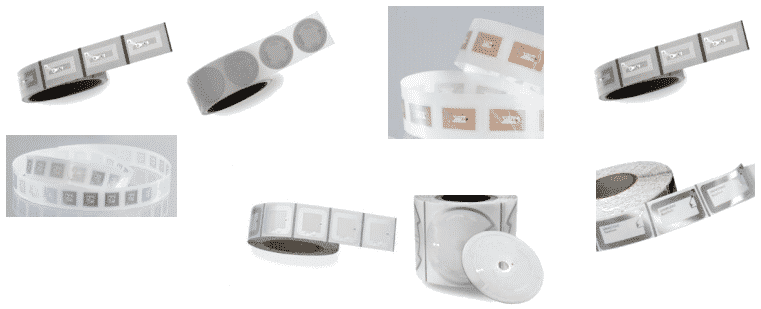 Apenas ter o DIE (a pastilha de silício onde o circuito do NFC é construído) do NFC, mais um circuito que faça as vezes de antena, permite fazer etiquetas muito flexíveis e que funcionem como adesivos que são colados nos produtos, também conhecidos como INLAY, visto na figura 7.