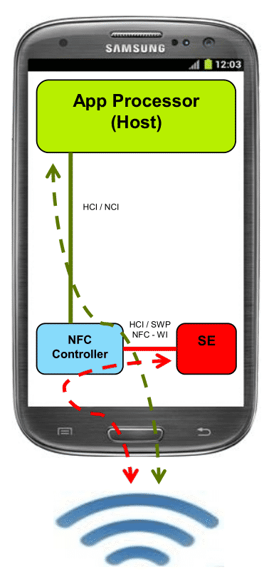 Estes níveis de segurança implementados neste modo incluem recursos de hardware no chip NFC dentro do telefone celular e de software dos aplicativos que conversarão com este chip.