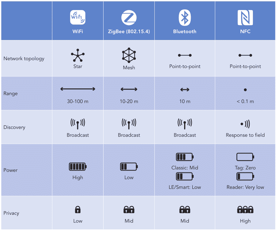Algumas tabelas comparando os diversos padrões de comunicação sem fio com o NFC podem dar uma ideia mais apurada do que se pode fazer com esta tecnologia.