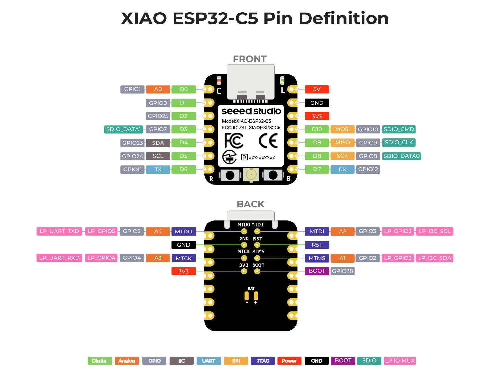 - Microcontrolador: ESP32-C5HR8 (Espressif)