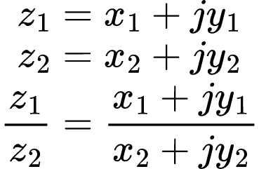 Por fim, lembrando que é preciso remover a parte imaginária do denominador (usando o conjugado), a divisão é: